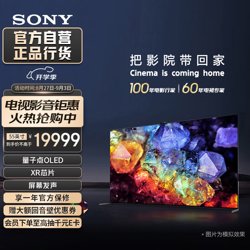 索尼(SONY)【官方直营】XR-55A95L 55英寸 新一代OLED 量子点 旗舰电视 XR认知芯片 智能摄像头 京配上门价格:19999.00元!
