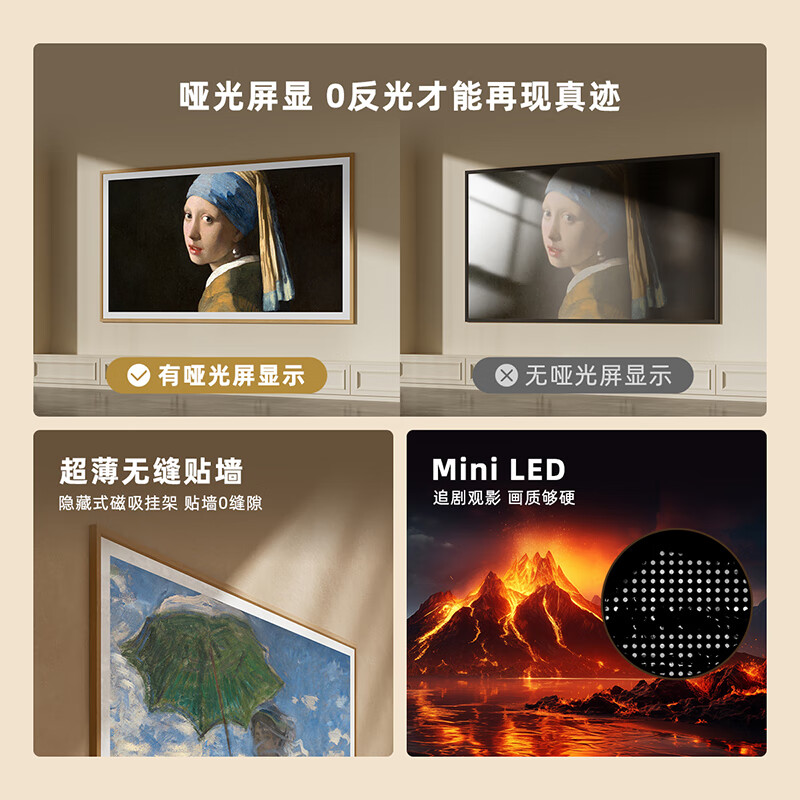 创维壁纸电视85A7E 85英寸 超薄壁画 mini led 哑光屏显 无缝贴墙 艺术电视机 北京以旧换新一级能效价格:10999.00元!