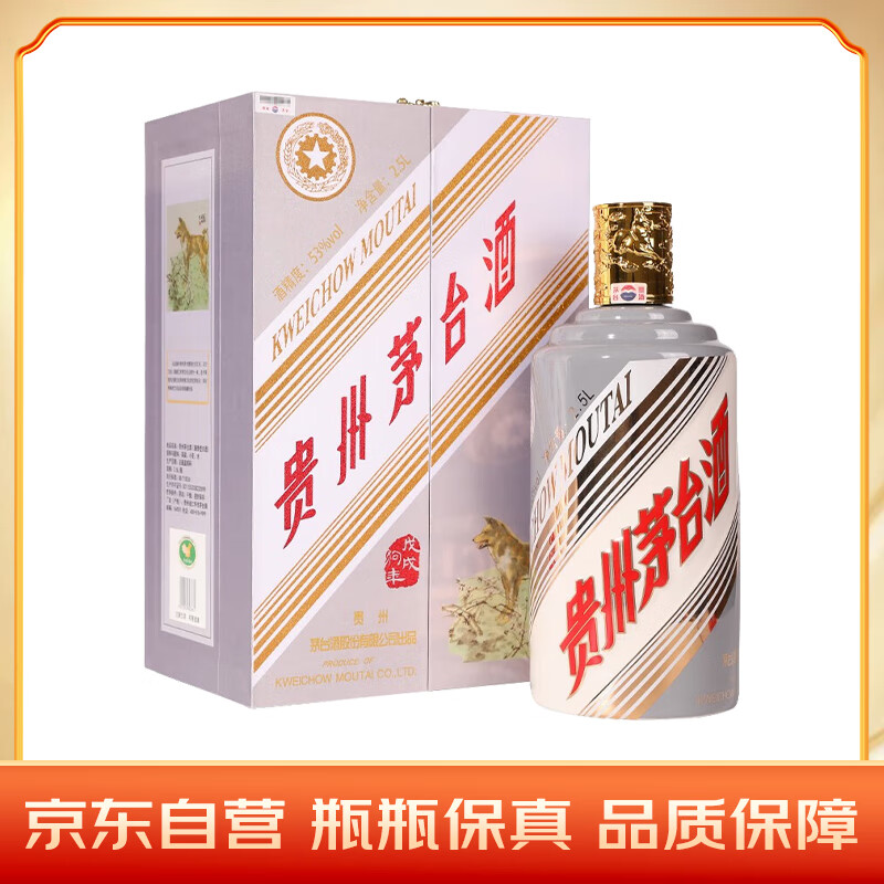 茅台(MOUTAI)生肖纪念 戊戌狗年 酱香型白酒 53度 2.5L 单瓶装价格:31999.00元!