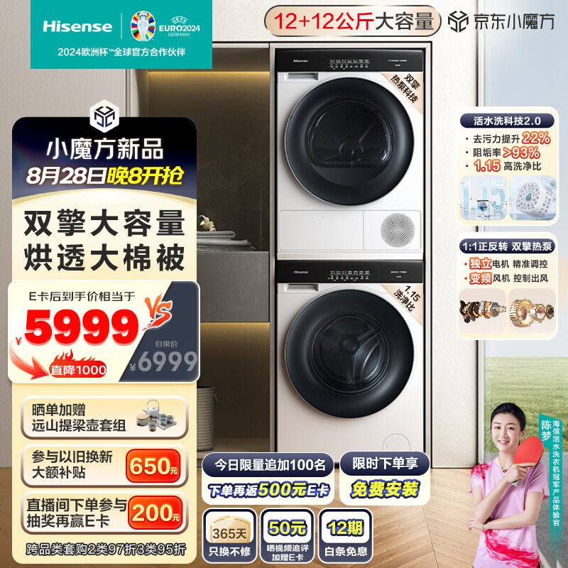 海信洗烘套装棉花糖MAX 12公斤滚筒洗衣机+双擎大容量热泵烘干机 1:1正反转活水洗 HG12SE5+SE5价格:6499.00元!