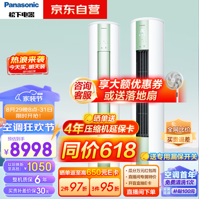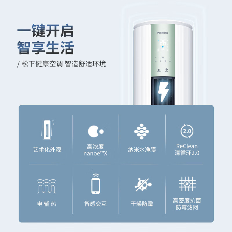 松下空调 净悦星3匹新一级能效 圆柱立式柜机变频空调 纳诺怡除菌 WiFi 以旧换新 云杉绿ZY72F310G价格:8998.00元!