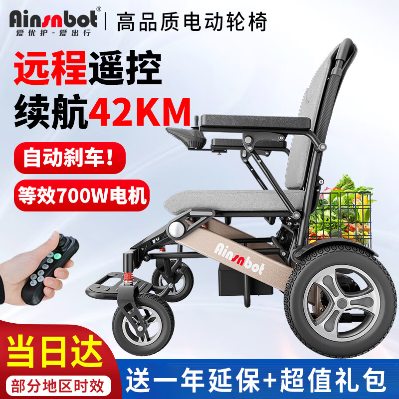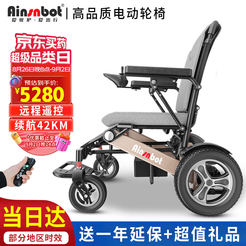 Ainsnbot 电动轮椅车 智能遥控全自动老年人残疾人家用出行轻便可折叠旅行老人越野轮轮椅车双人价格:5280.00元!